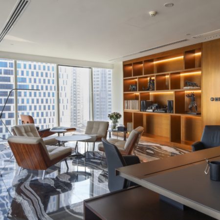 The recent Pure Escape project at Reef Tower, JLT stands out as a benchmark in luxury office design. Designed as a modern and inspiring workplace, it combines elegance with smart functionality, creating a space that encourages productivity while reflecting the client’s brand identity.